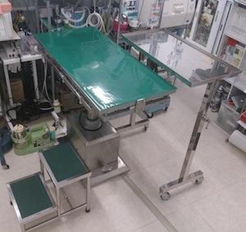 | 手術関係 | 麻酔モニター/コーリンBP-608Evolution獣医モデル・動物用生体情報モニター、麻酔機/キムラmed KIV-7、人工呼吸器、手持ち型パルスオキシメーター/NONIN 9847V、LED無影灯2台、麻酔カウント時計、マイクロハイスピードドリルシステム/ナカニシ サージックXT同等モデル、シーリング装置/LigaSure リガシュア(準備中)、超音波凝固切開装置/ジョンソンエンドジョンソン ハーモニックスカルペル(準備中)、電気メス/Bovie ボビー IDS-300、電気メスSL−5、ヒーター内蔵油圧手術台、水循環式保温装置/GAYMAR、オーバーテーブル、手術用踏み台、吸引器サクション/ミニック2台、パルスオキシメーター/Nellcor N-550、カウンターショック/日本光電、WelcyAllyn LEDヘッドライトが2セット |