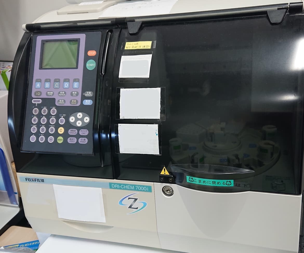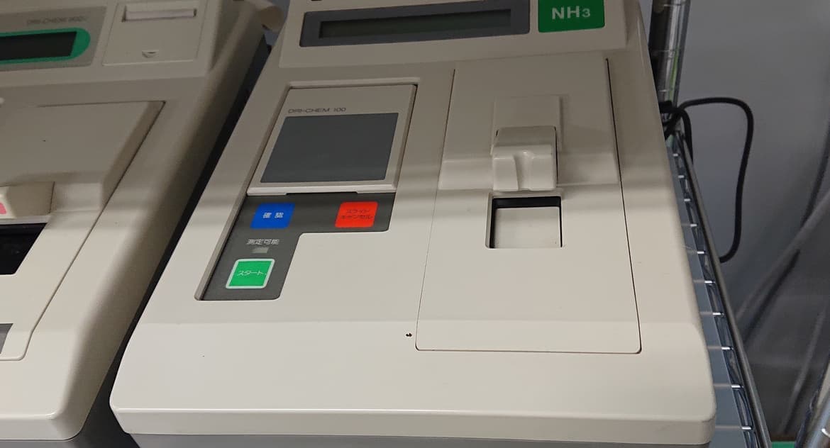 腎臓、肝臓などの血液生化学を測定する器械です。