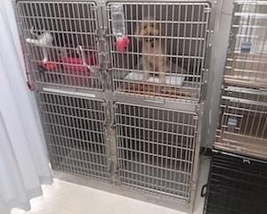 冷暖房完備の入院室を2部屋に分けて設備。外に屋根付き入院わんこ用トイレスペースもあり。