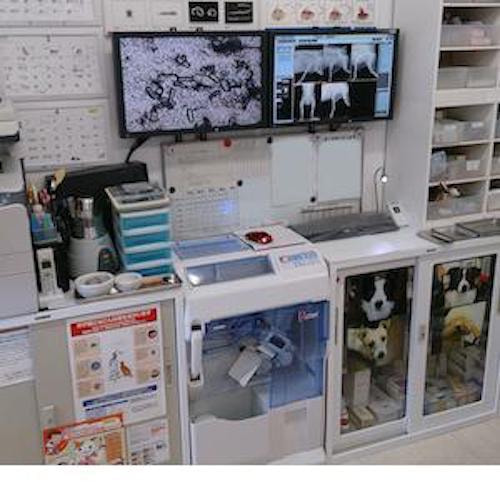 白血球・赤血球などの値、腎臓・肝臓・炎症などの生化学血液検査は院内検査が可能です。血液検査のマシンだけで8台ほど所有。最短20分程度で結果が出ますので、すぐに治療を行う事が出来ます。